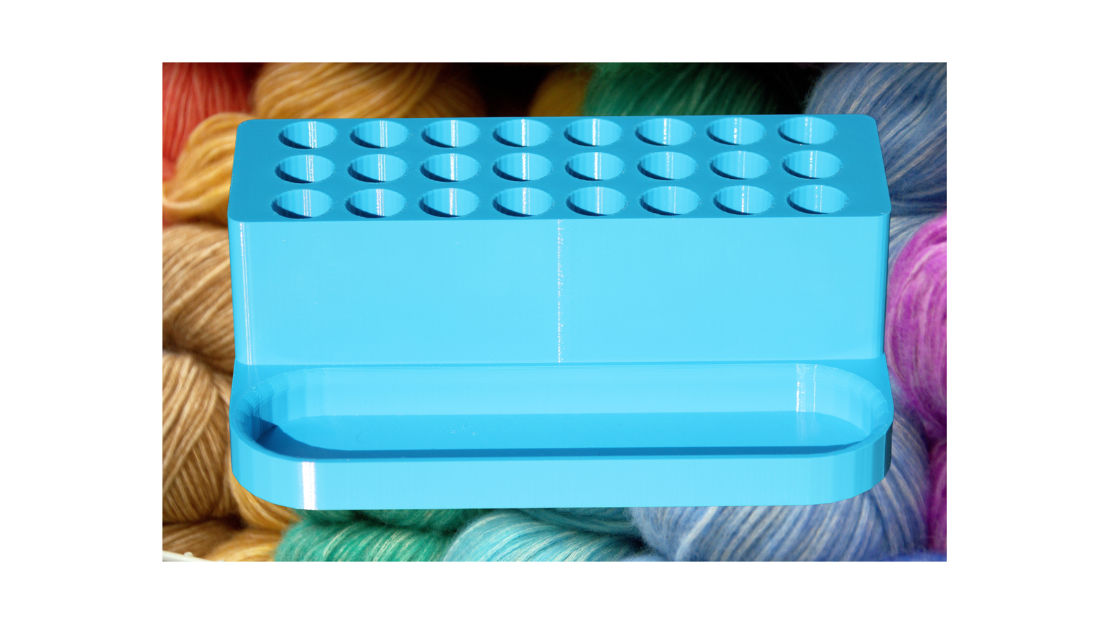 This beautifully crafted 3D Printed Hook Stand is made from high-quality PETG material, featuring 24 spots for your hooks, specially designed for Furls almost all hooks fit in this hook stand. It also has a tray to set your hook down safely as well as keep darning needles or stitch markers nearby for easy access! Lightweight yet durable, this hook stand is perfect for crafters of all levels, making it a must-have accessory for any knitting or crochet enthusiast. Made by Mr YarnDoll @ the YarnDoll Manor!